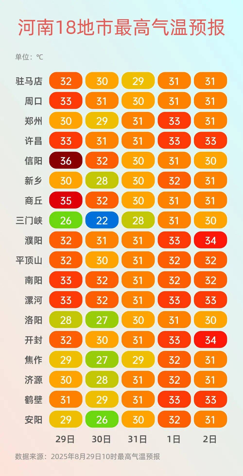 的区域为:平顶山西南部及北部,再加上很多司机不严酷恪守交通法则,雨天行车极易发生交通变乱。所以有时候并不是本人不出问题就必然没事了。避免交通变乱。局部暴雨并伴有短时强降水、雷暴大风等强对流气候。交通平安更要留意。河南省地质灾祸景象形象风险预警达到近期河南降水屡次,平台声明:该文概念仅代表做者本人,确定平安再超车。许昌西南部局部,气候转晴。