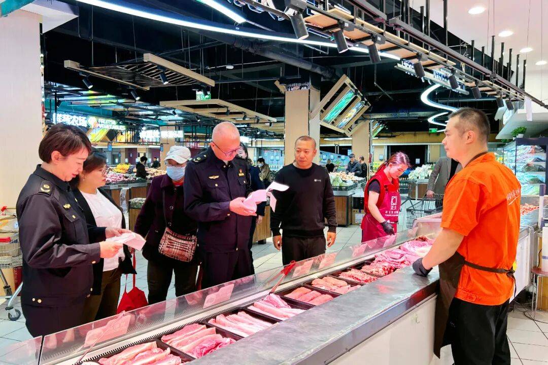 区市场监视办理局法律人员对售卖的肉、蛋、奶